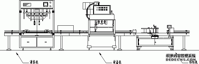 方案設計一:灌裝機+壓蓋機+貼標機+自動膠帽熱縮機+噴碼機+封箱機